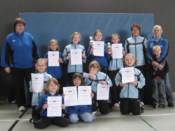 Viel Grund zur Freude hatten Kim Müller und Alina Heupel, die in der größten und sehr starken Gruppe der Juti C/D einen exzellenten zweiten Platz erturnten. Mit in dieser Gruppe waren immerhin die Vorjahresgesamtdritten des TVG, Carina Hagedorn und Witta Blum, die sich diesmal aber mit dem siebten Platz in Juti C/D zufrieden geben mussten. Die weiteren Plätze in dieser Gruppe belegten Alexandra Schmol und Vanessa Scholz (8.) sowie Daniela Hagedorn und Sarah Emmerich (9.). Auch die Gesamtsieger des Vorjahres blieben deutlich hinter den Erwartungen zurück, denn für Katharina Hanke blieb mit ihrer Partnerin Ricarda Moos (TuS Eisern) am Ende nur ein fünfter Platz bei den Juti A/B.